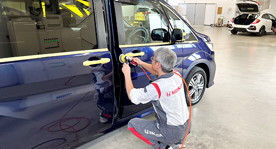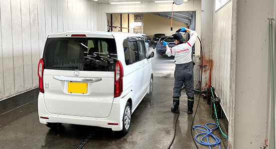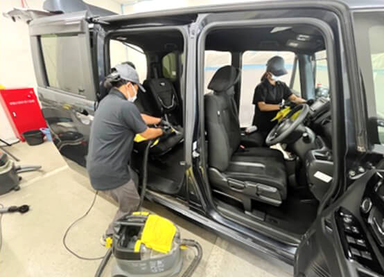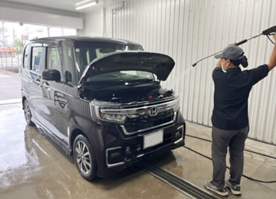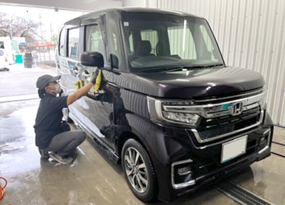 ボディーのシミ取りや鉄粉除去・エンジンルーム内洗浄や室内清掃・シートクリーニングまで見えないところもしっかり丁寧に、1台1台、心を込めてキレイに仕上げを行っております。お客様へ安心・信頼・満足をお届けいたします。
